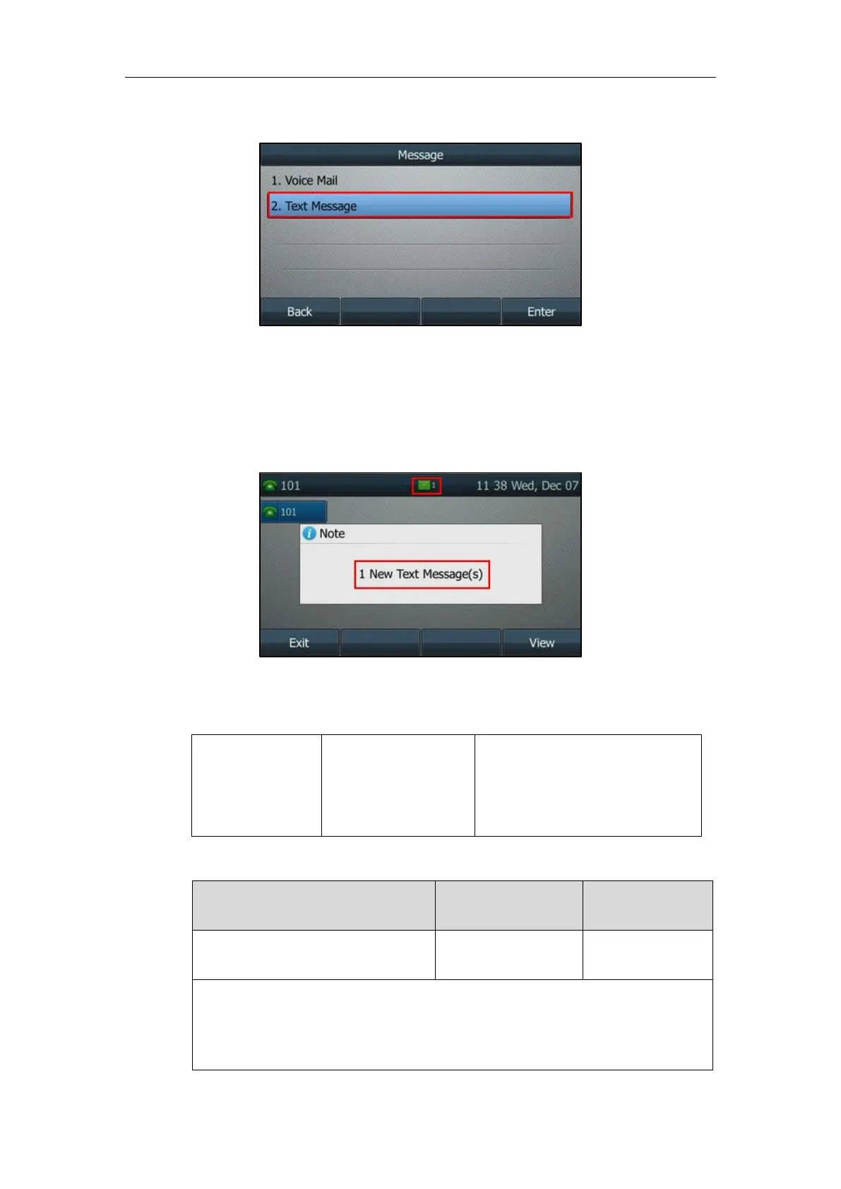 LED will slowly flash red, and the LCD screen will prompt receiving new text messages with the