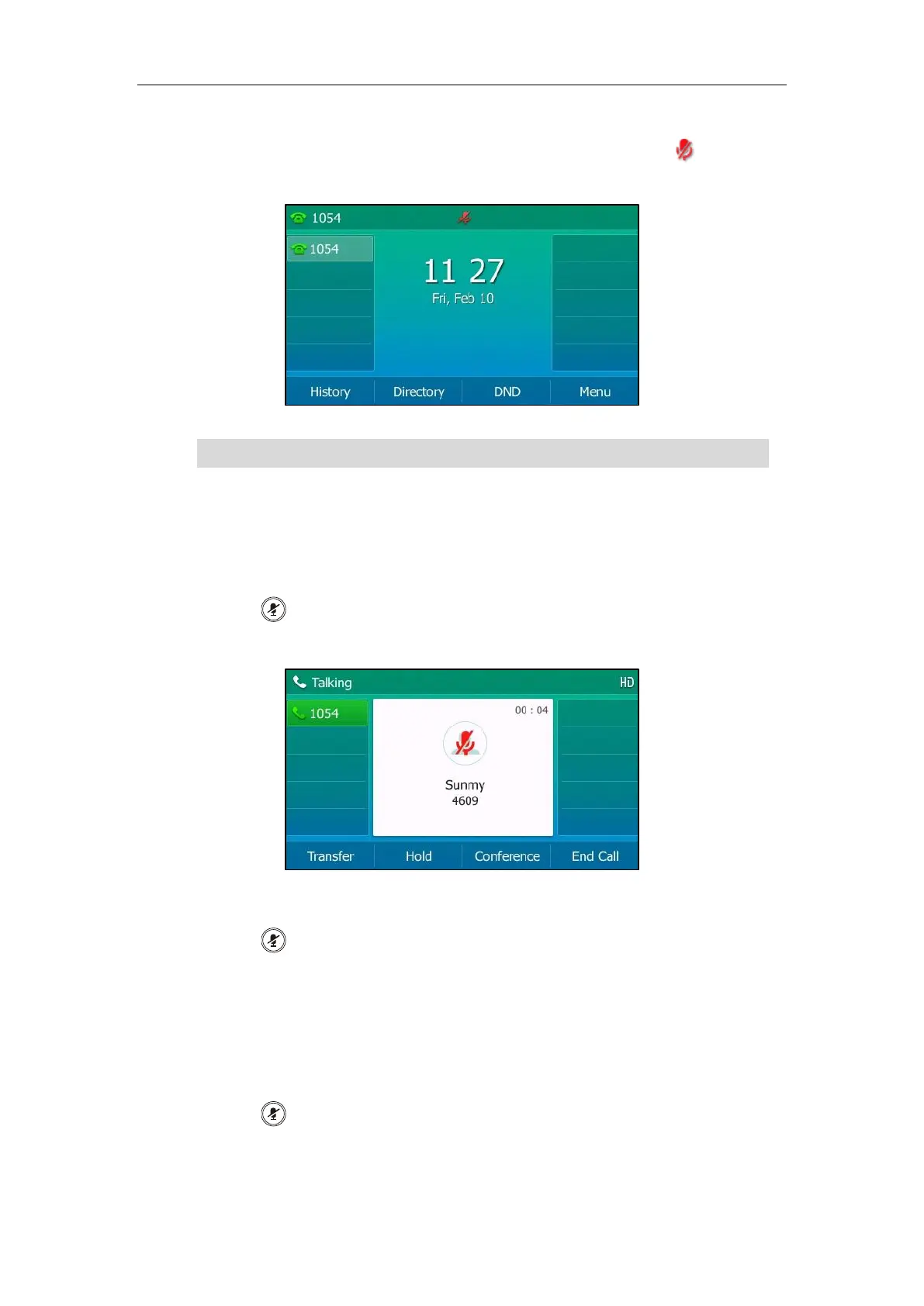 your room when auto answer is enabled on your phone. When you mute the phone in an idle