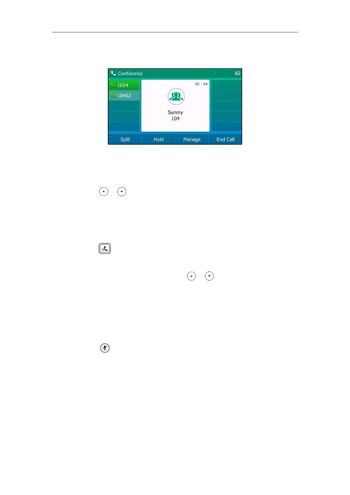 -  Press            to mute the conference call, all other participants can hear each other, but they