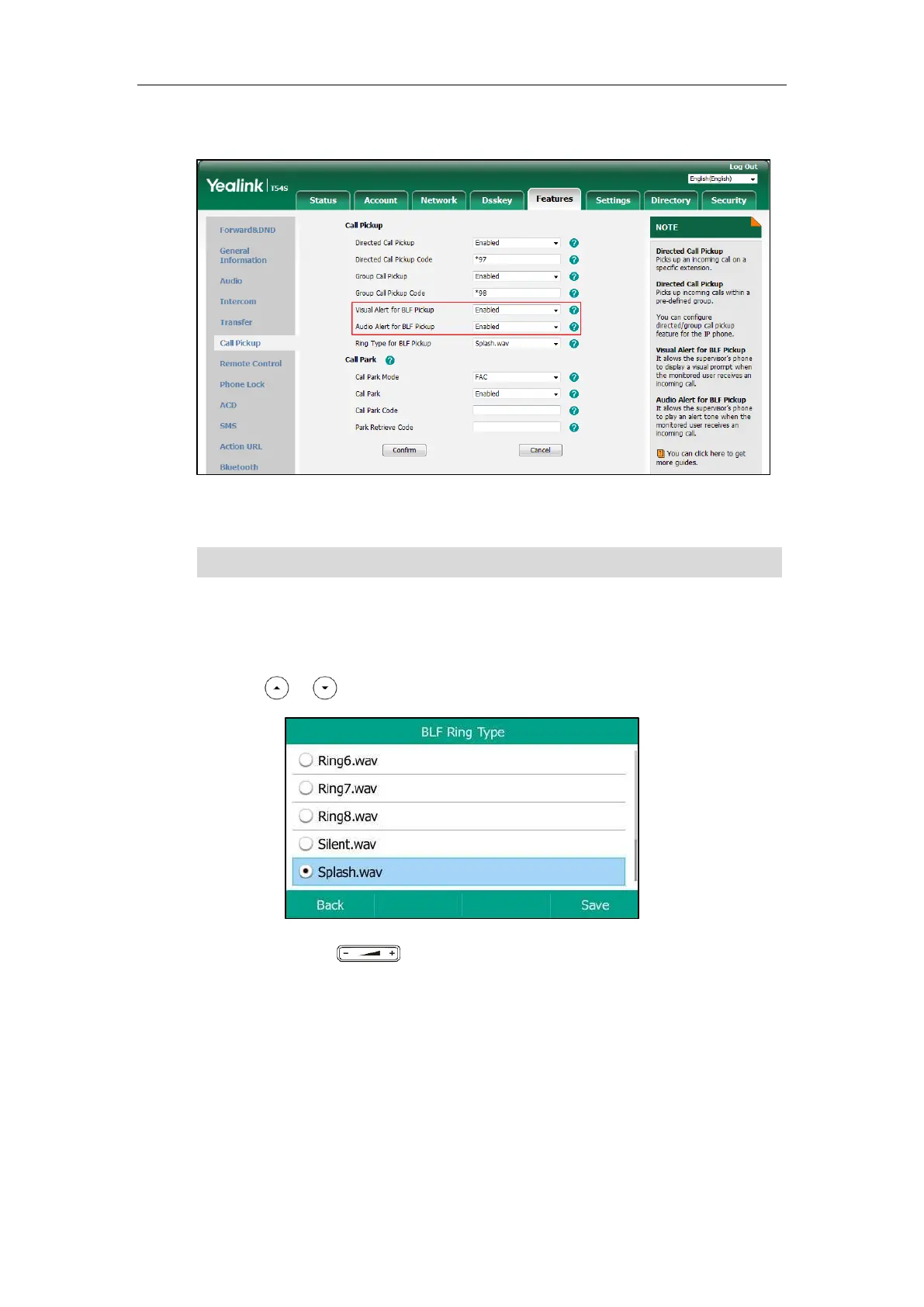 BLF ring type is configurable via web user interface at the path Features->Call Pickup.
