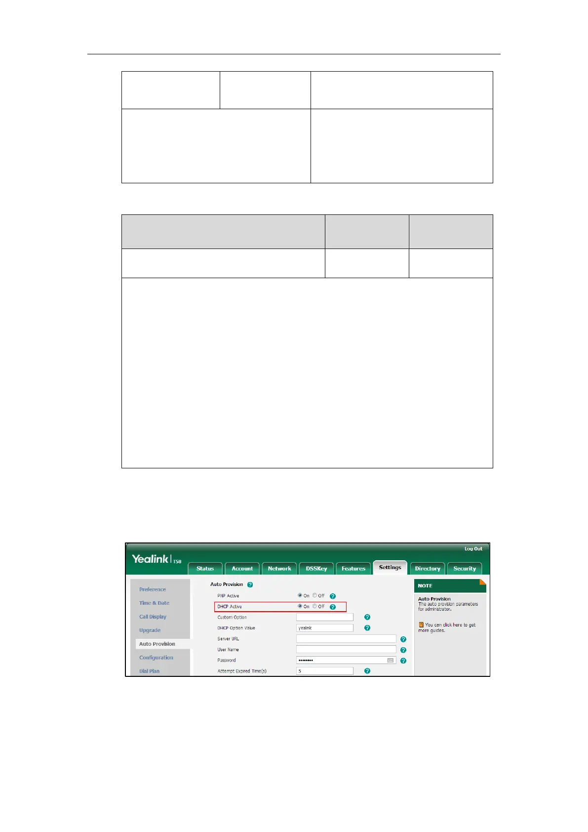 Settings->Auto Provision->DHCP Active