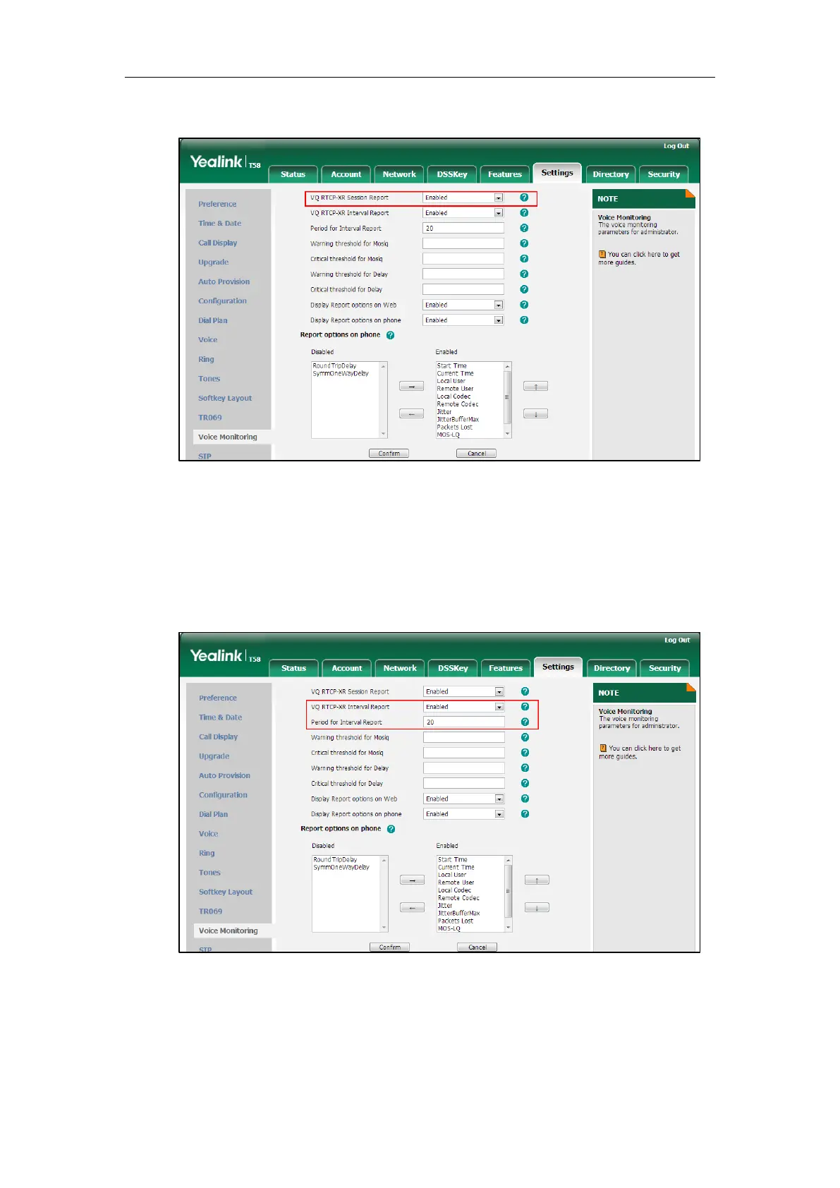 2. Select the desired value from the pull-down list of VQ RTCP-XR Interval Report.