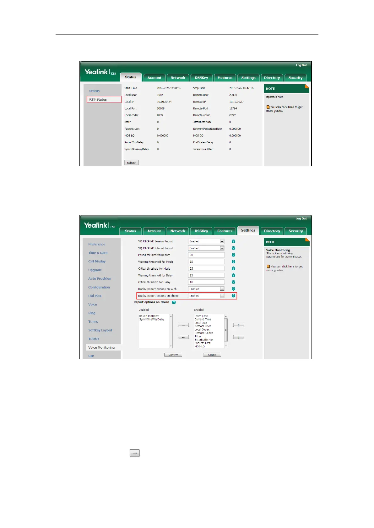 The RTP status will appear on the phone user interface at the path: Settings->Status->RTP