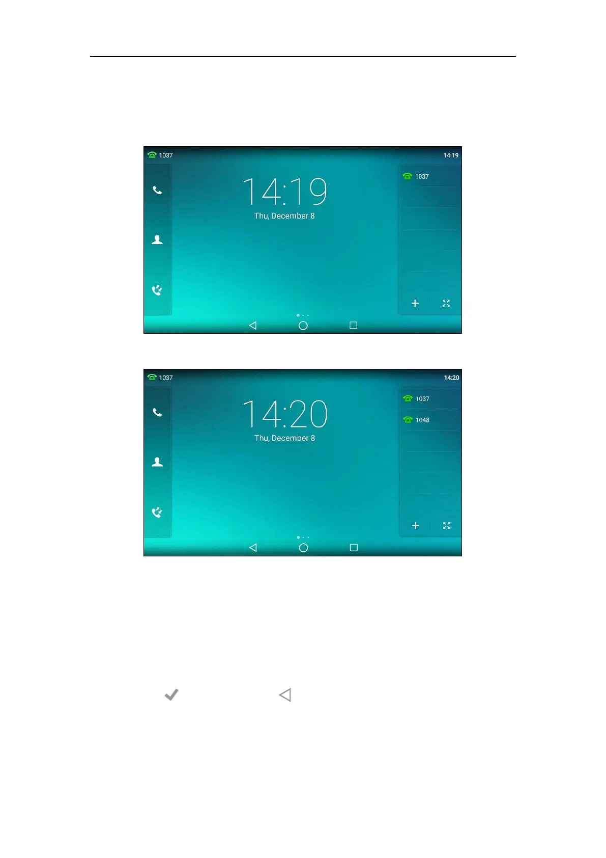 The following figures demonstrate single or multiple accounts registered on the phone: