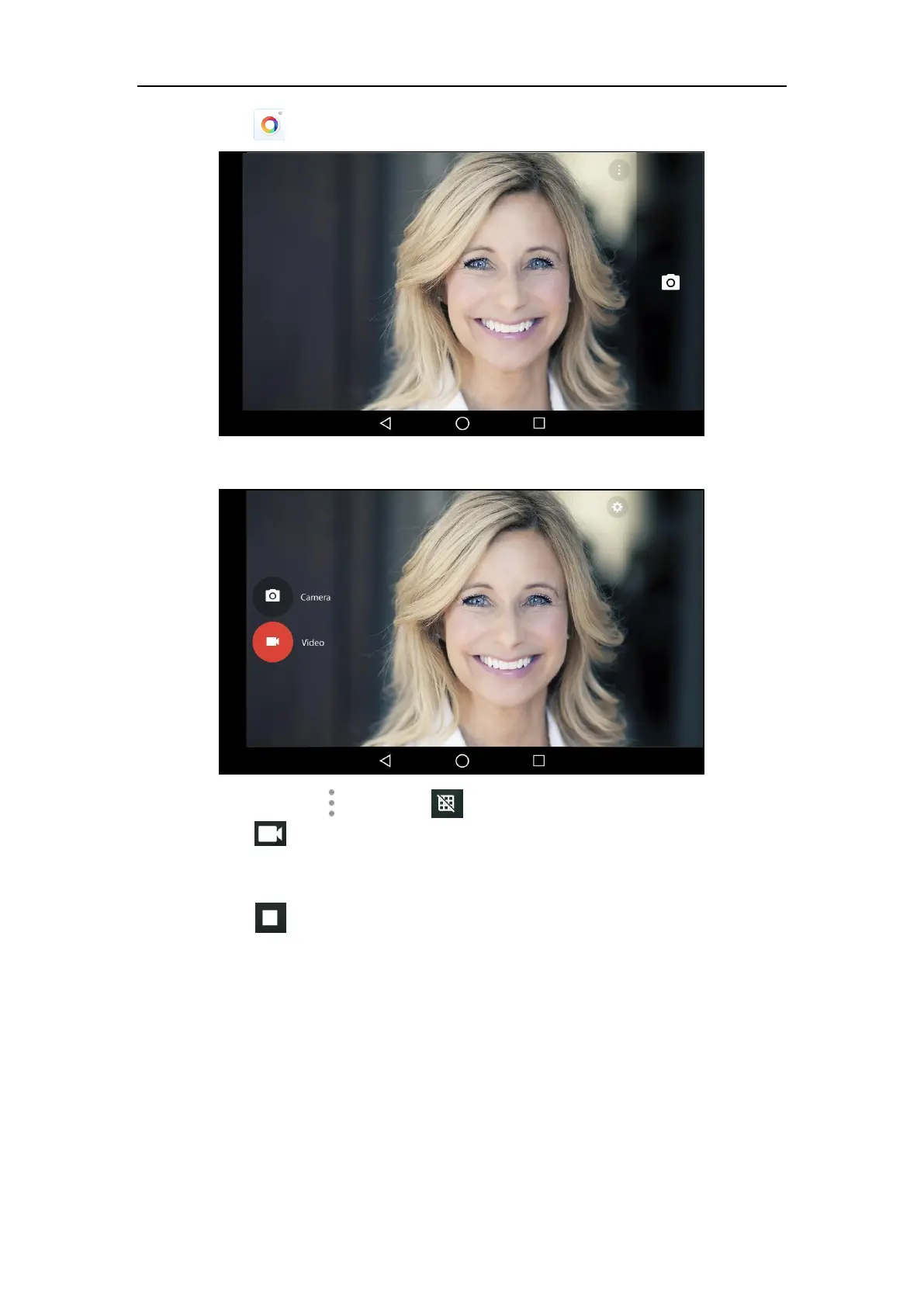 4. (Optional.) Tap and then tap to turn on the camera grid.