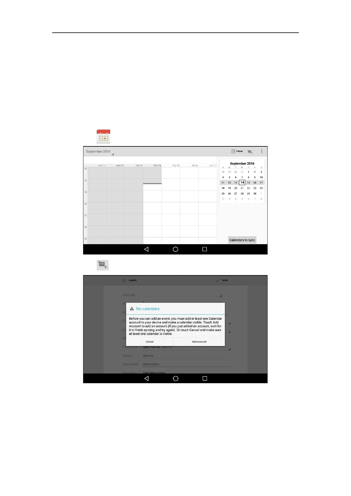 5. Sign in the Calendar, refer to Adding APP Accounts.