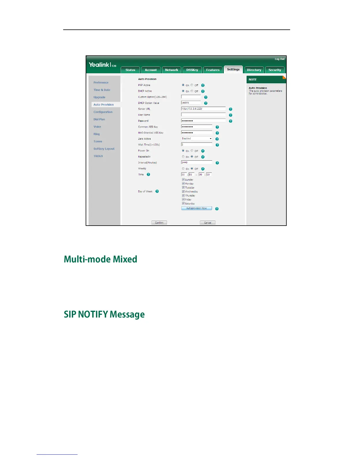 The phone will perform the auto provisioning process when receiving a SIP NOTIFY