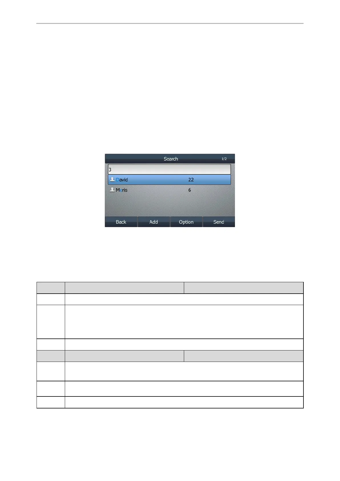1-Prefix matching, the IP phone will search the contact numbers or names start with the entered char-