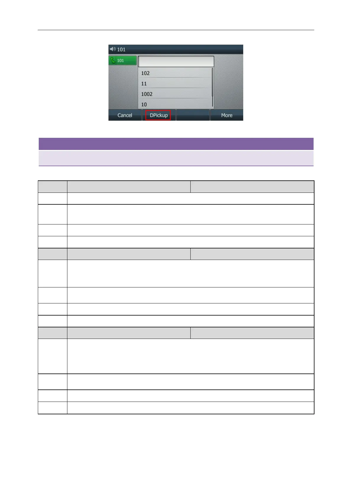 Description It enables or disables the user to use DPickup soft key when performing directed call pickup feature.