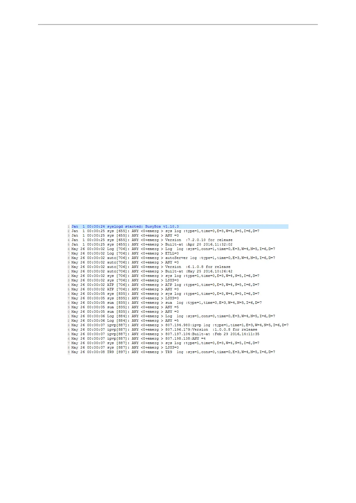 The following figure shows a portion of a sys log file (for example, 00156574b150-sys.log):