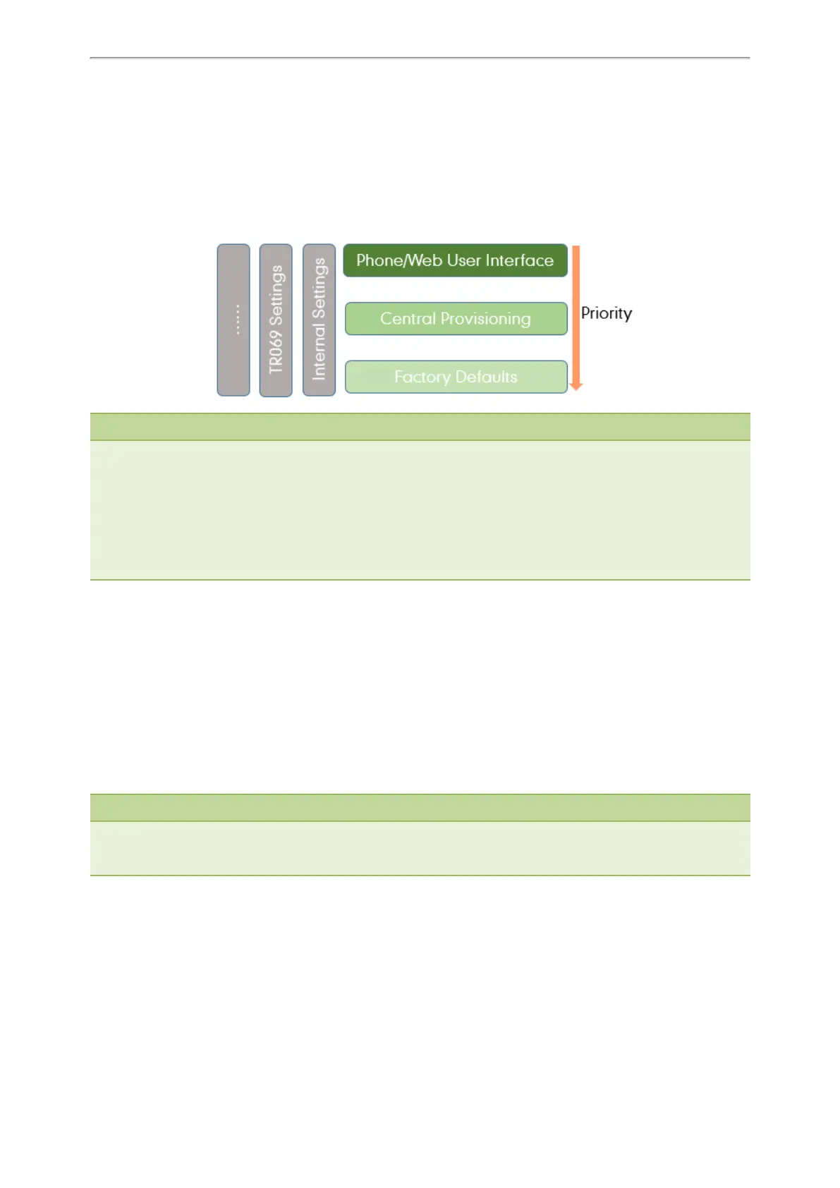 The provisioning priority mechanism takes effect only if “static.auto_provision.custom.protect” is set to 1. For more inform-