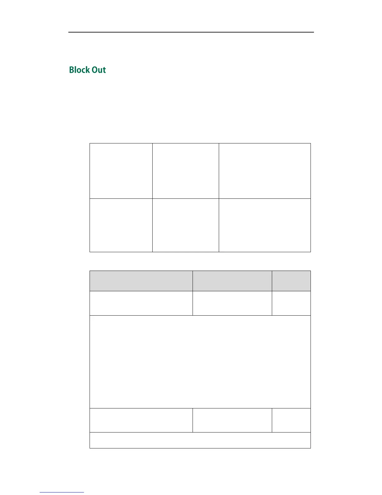 Block out rule prevents users from dialing out specific numbers. When entered numbers