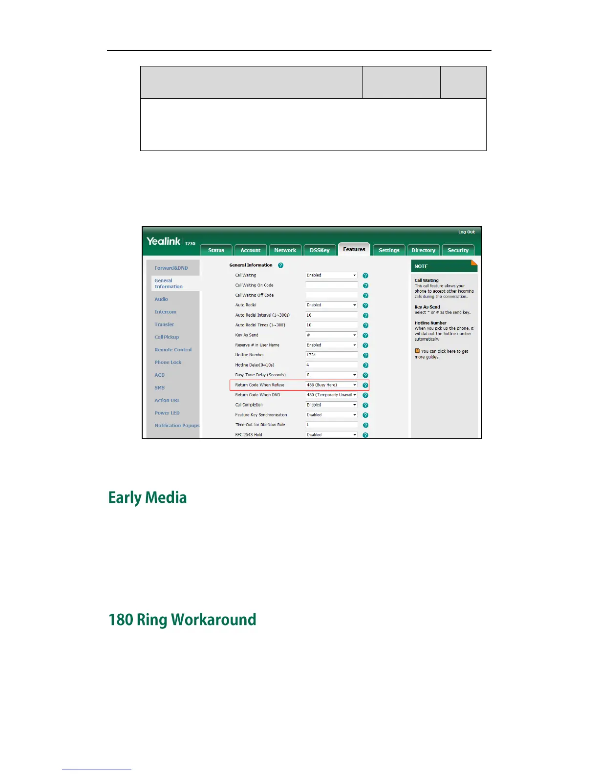 tone and begins to play the media received. 180 ring workaround allows IP phones to