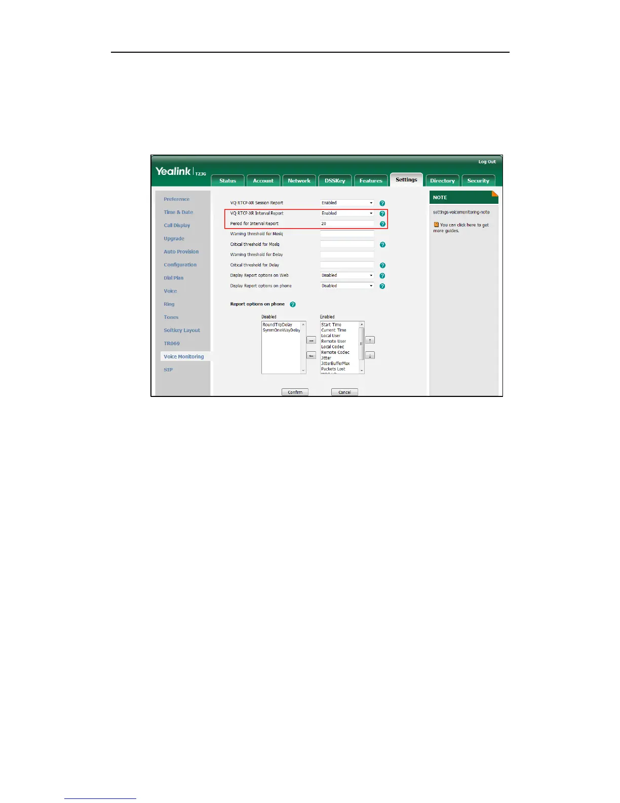 2. Select the desired value from the pull-down list of VQ RTCP-XR Interval Report.