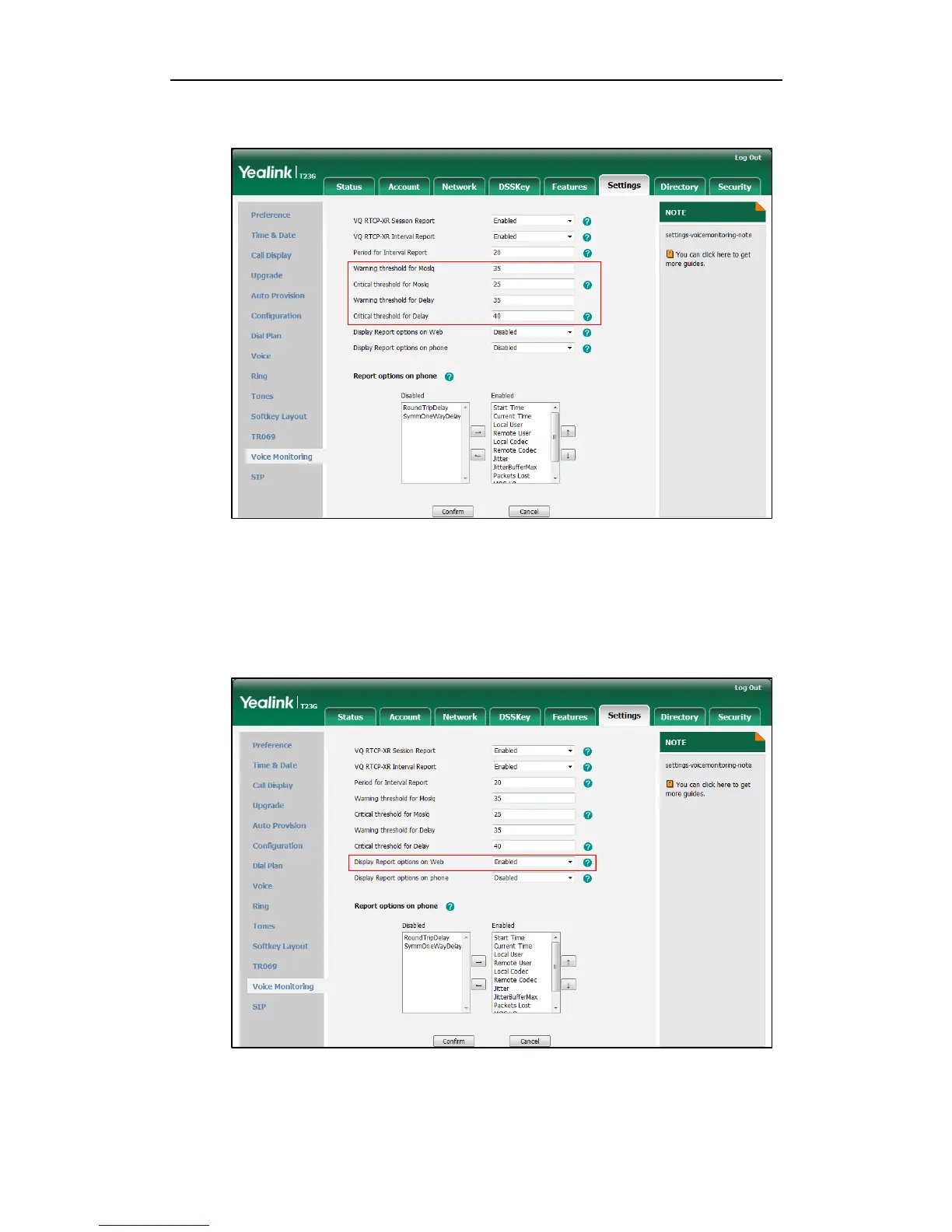 2. Select the desired value from the pull-down list of Display Report options on Web.