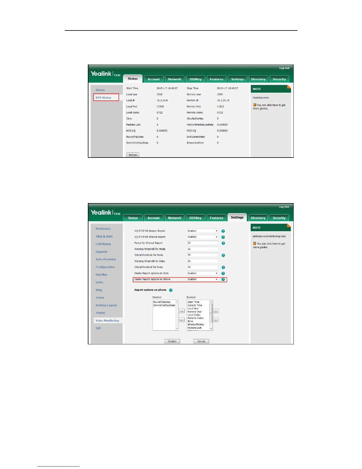 To configure the options of the RTP status displayed on the LCD screen via web user