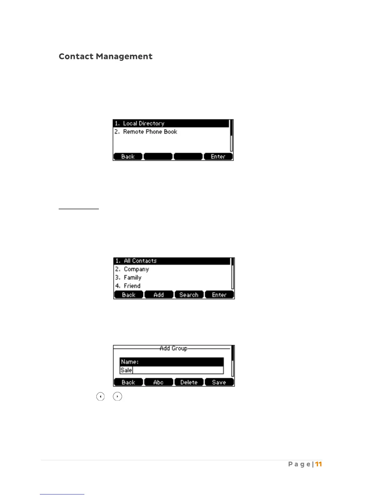 Press the Directory soft key when the phone is idle. The LCD screen displays the enabled list(s) in
