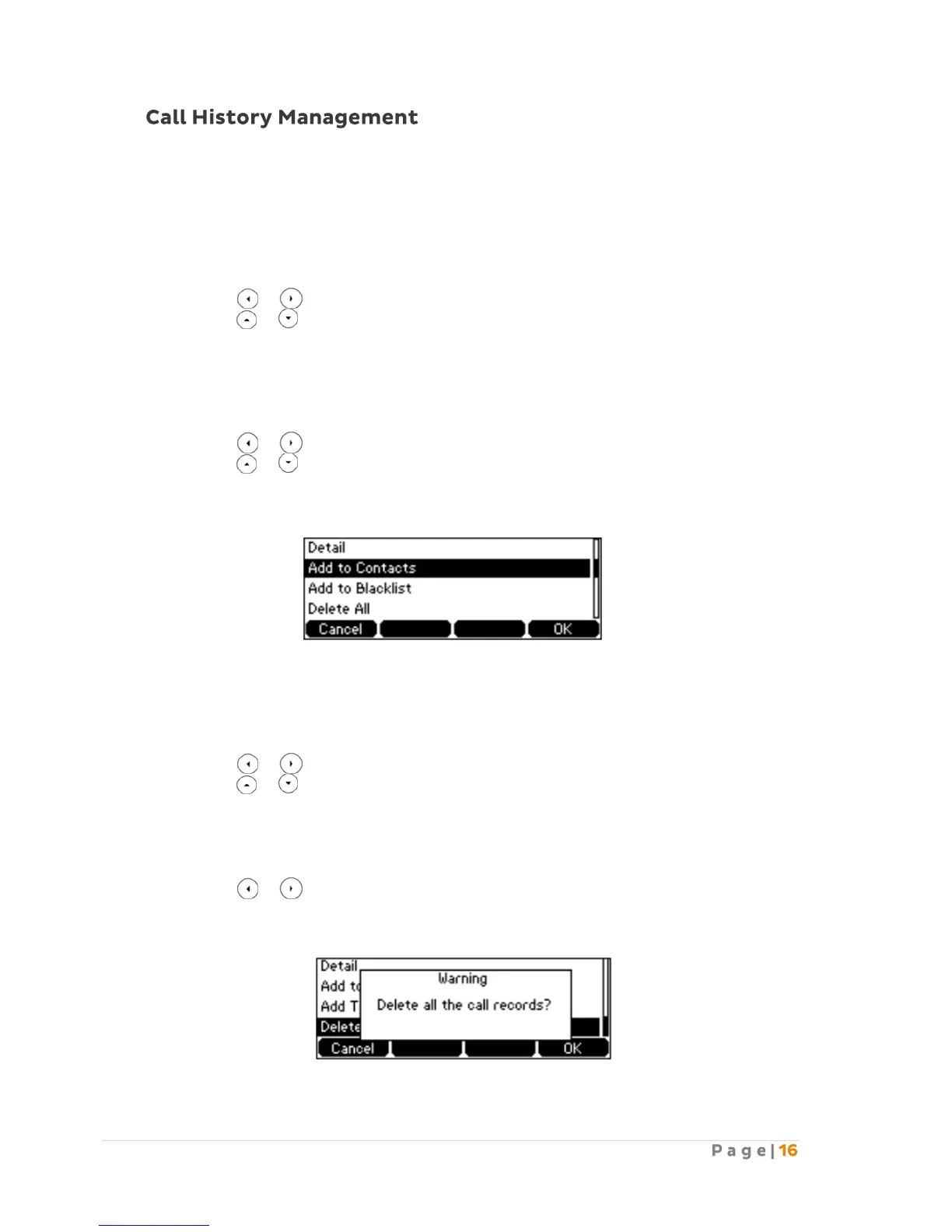 add a contact or delete an entry from the call history list. The call history feature is enabled by