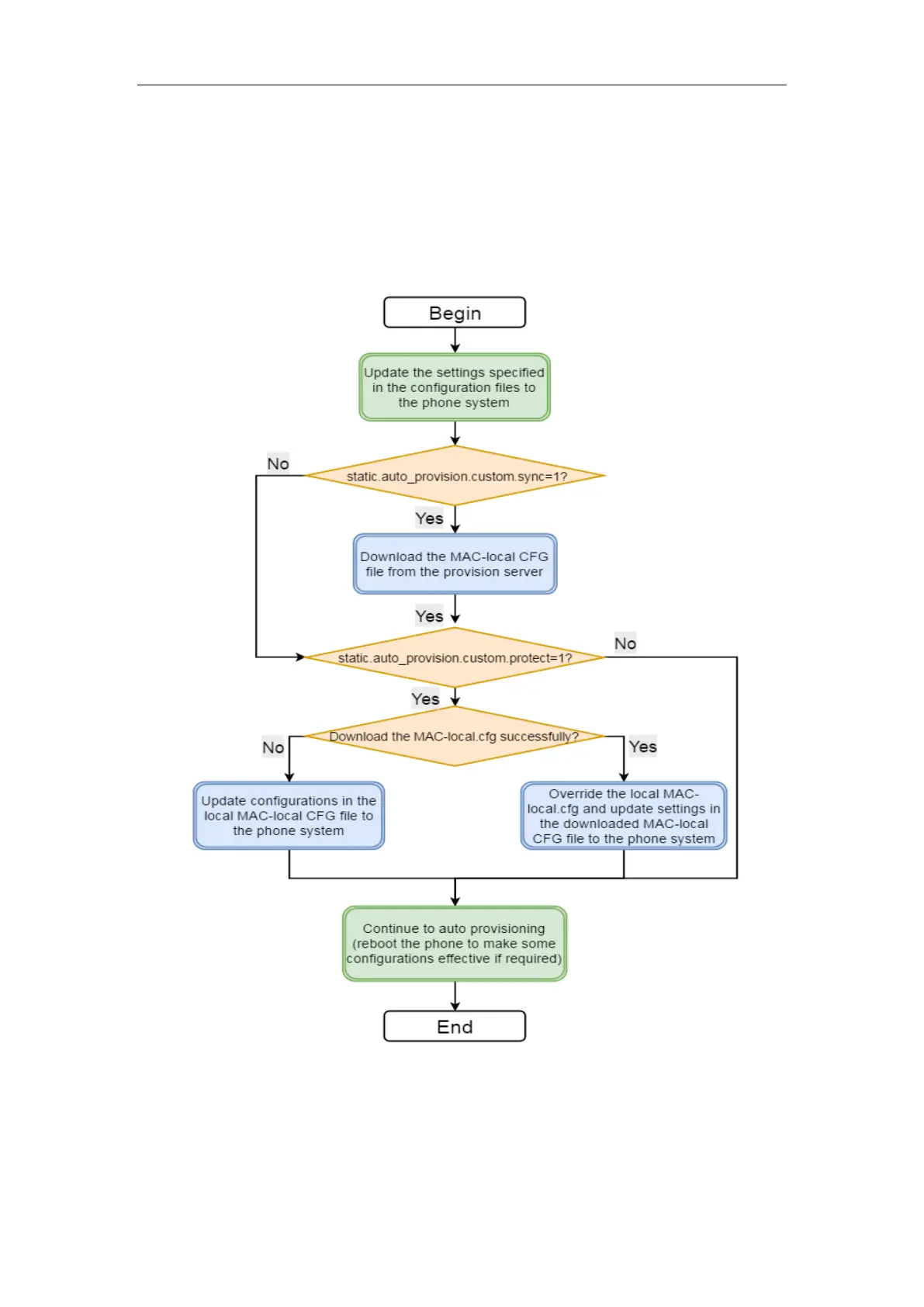The following shows auto provisioning flowchart for Yealink IP phones when a user wishes to keep user’s
