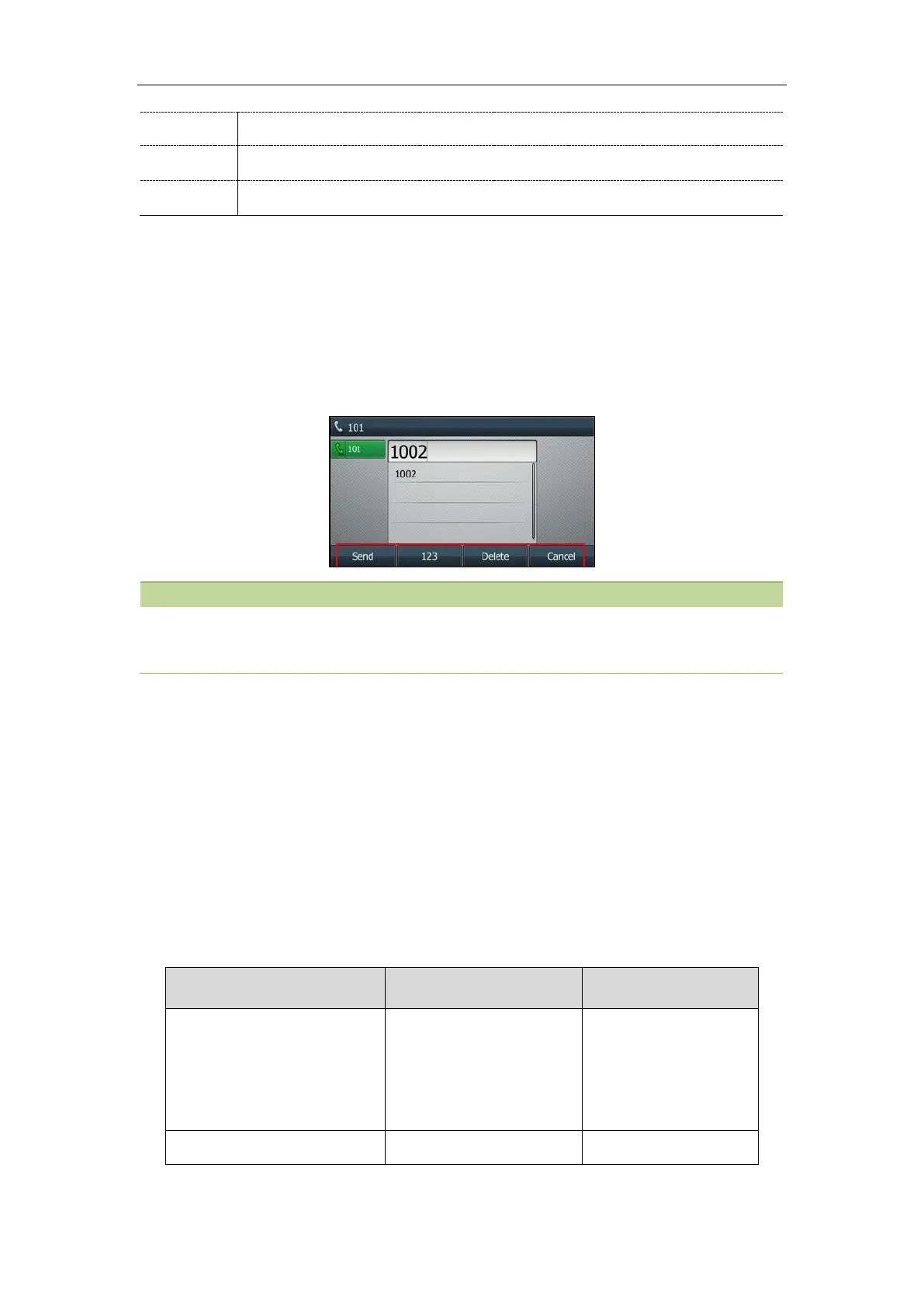 The following shows the soft keys displaying on the phone in the dialing state: