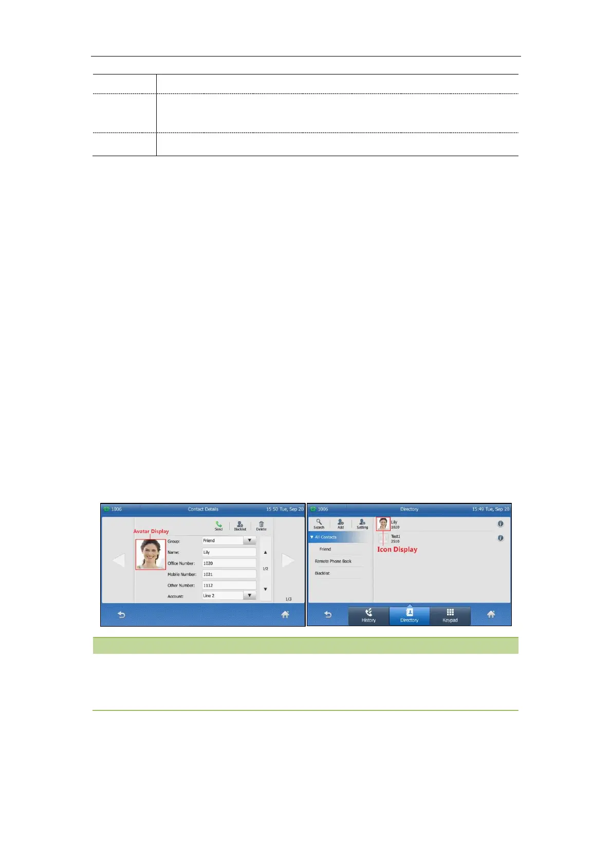 On T48S/T48G IP phones, when uploading a contact avatar, you can also upload a contact icon named