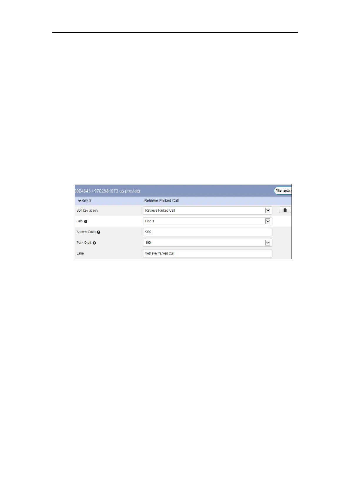4. Enter the access code for retrieving parked call in the Access Code field.