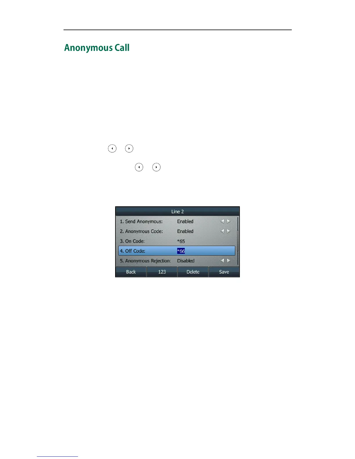per-line basis. You can also configure the phone to send anonymous code to the server