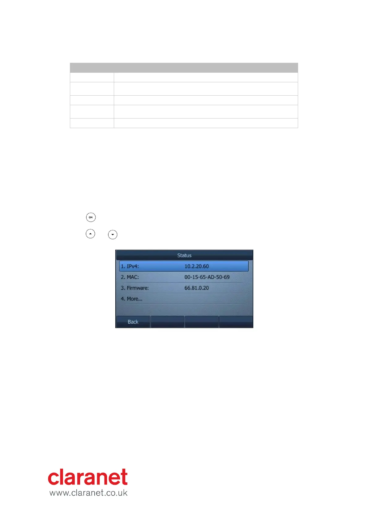To view the phone status via phone user interface:
