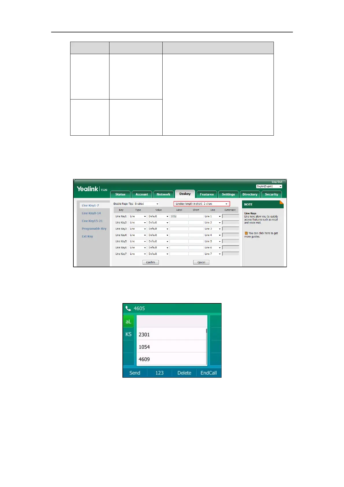 2. Select the desired value from the pull-down list of Linekey length in short.