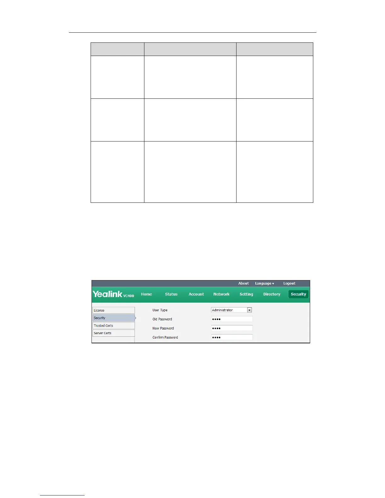 To configure administrator password via the web user interface: