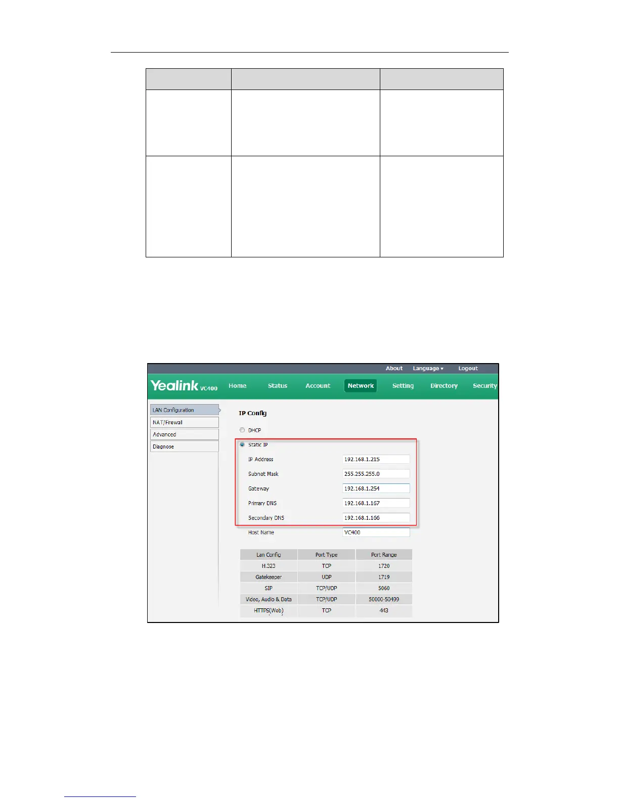 1. Select Menu->Advanced (default password: 0000) ->LAN Configuration.