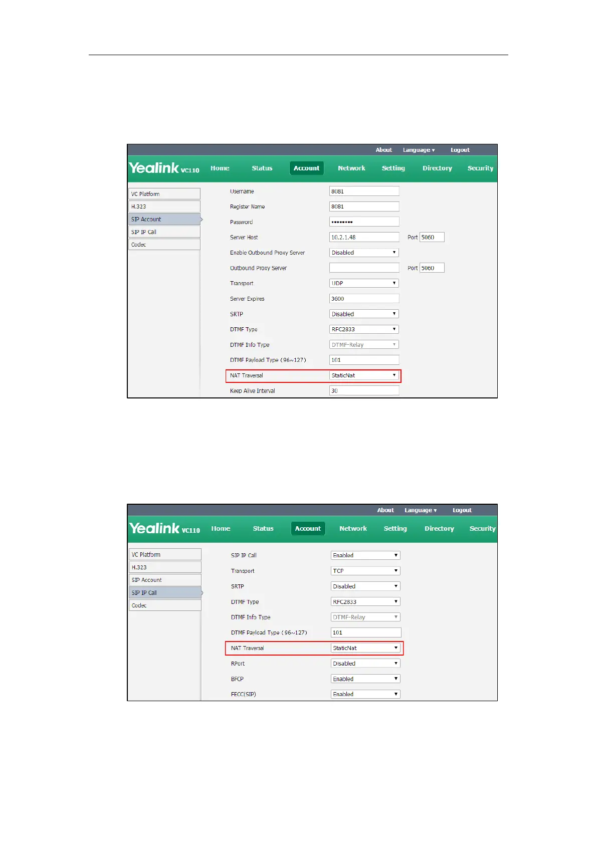 2. Select StaticNat from the pull-down list of NAT Traversal.