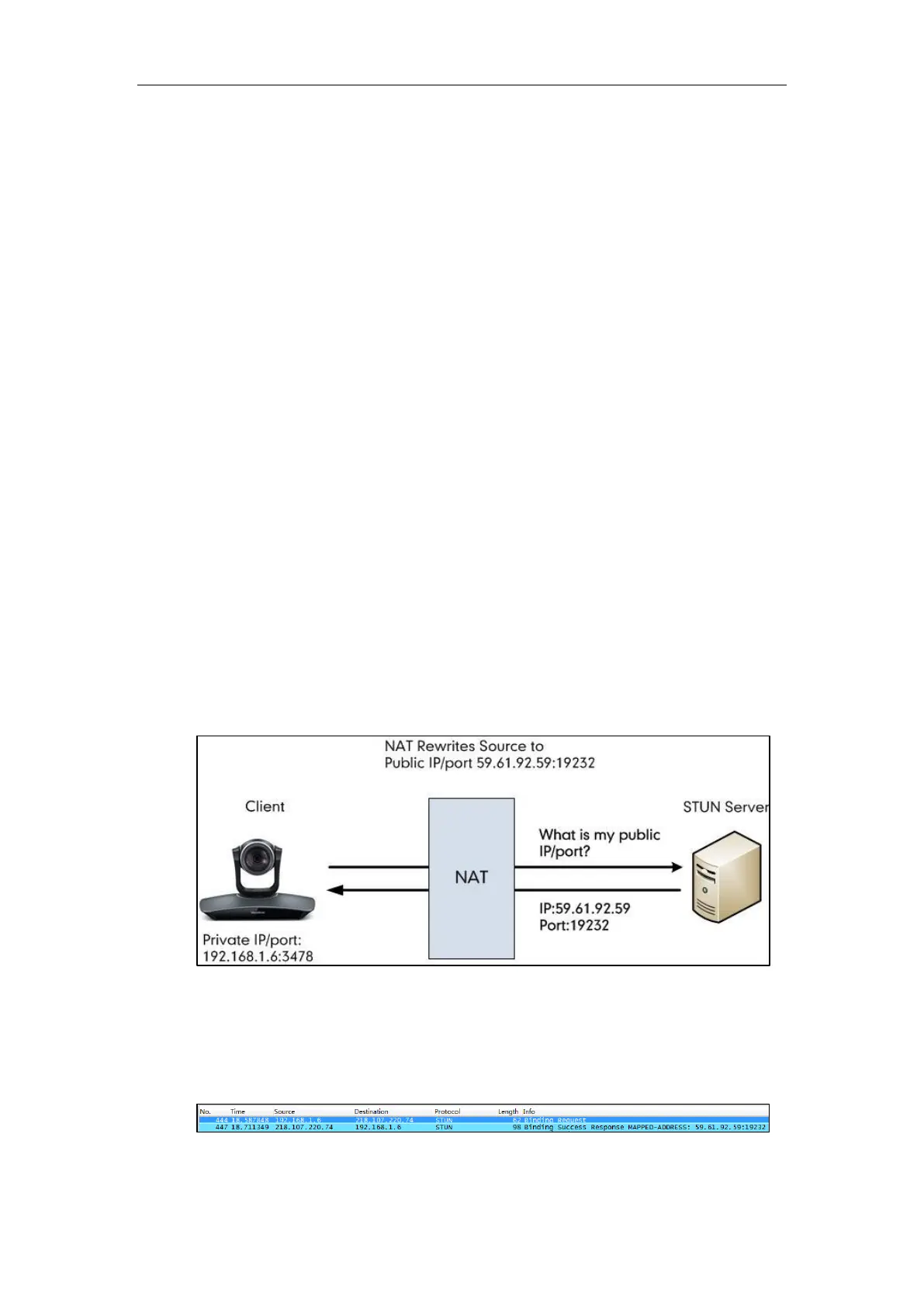 Capturing packets after you enable the STUN feature, you can find that the VC110 video