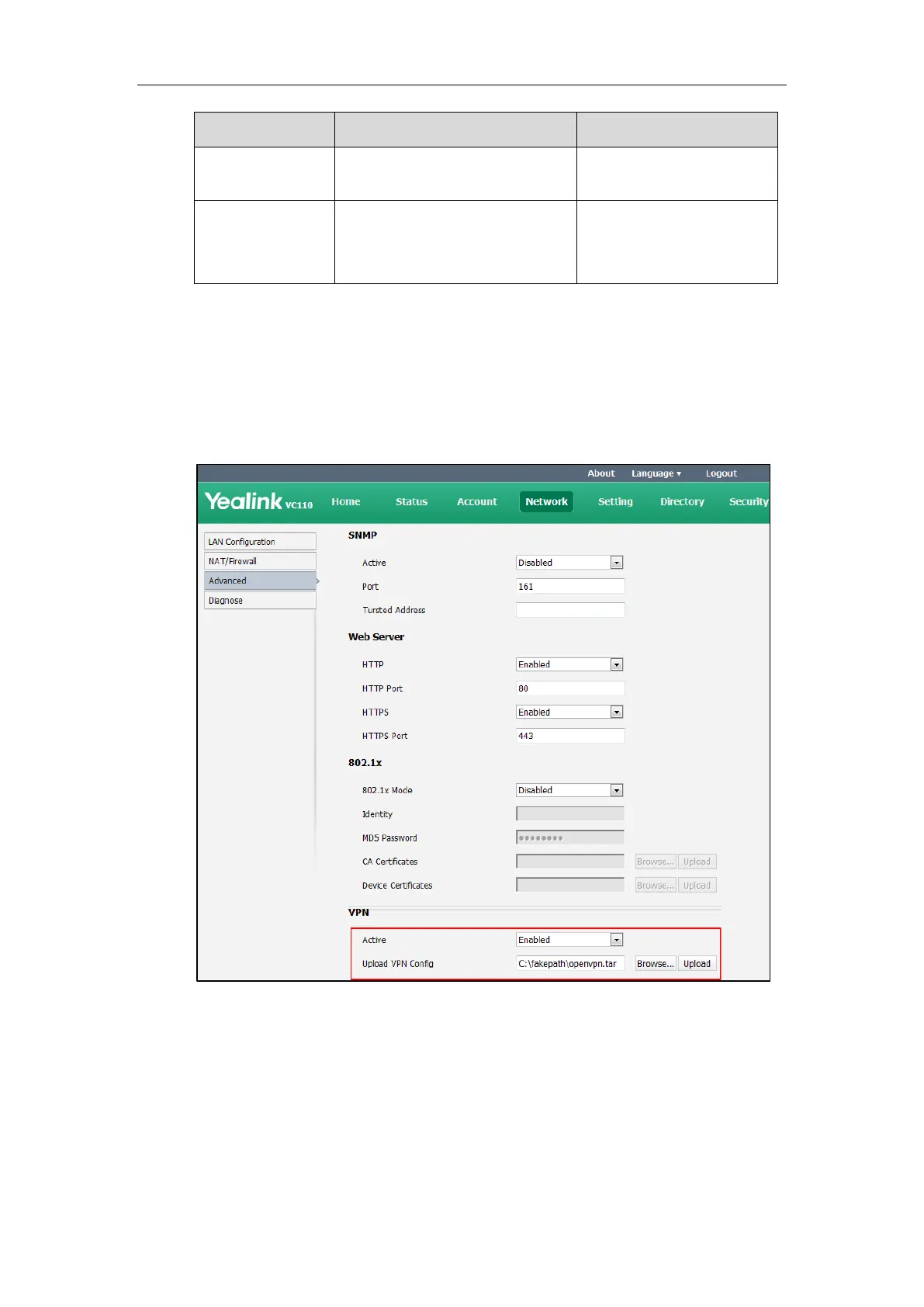 2. In the VPN block, click Browse to locate the VPN file (*.tar) from your local endpoint.