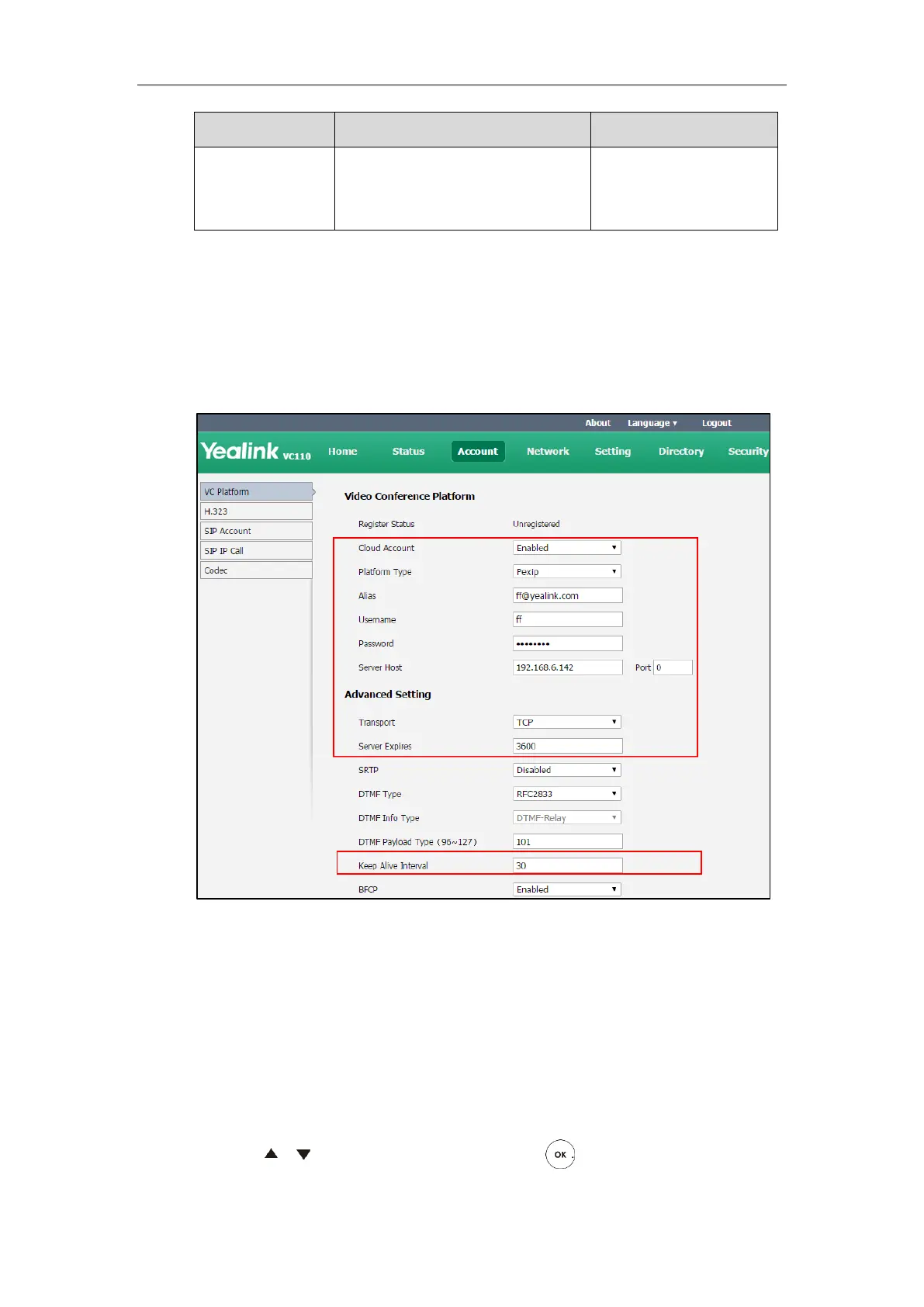 1. Select Menu->Advanced (default password: 0000)->Video Conference Platform.