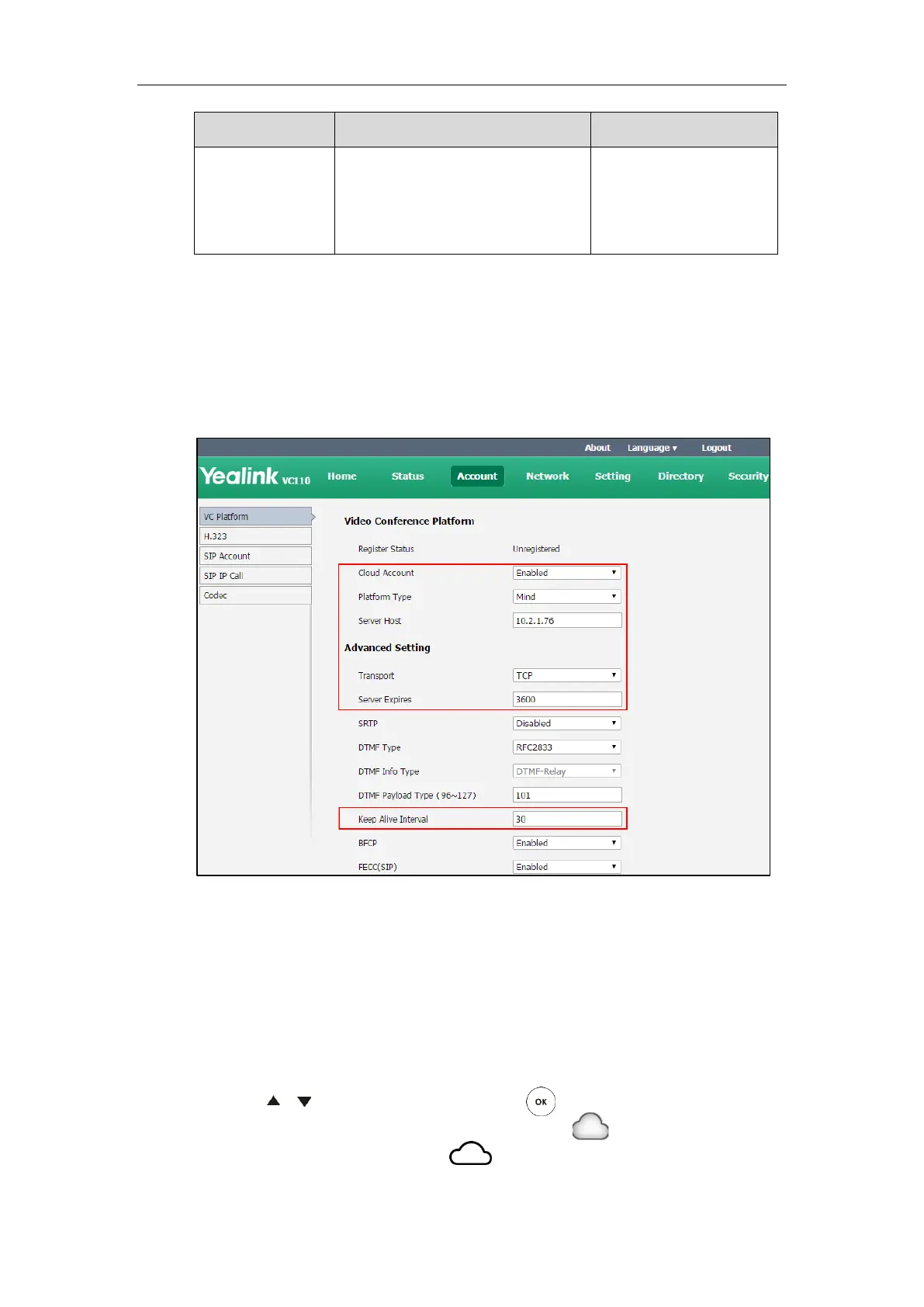 1. Select Menu->Advanced (default password: 0000)->Video Conference Platform.