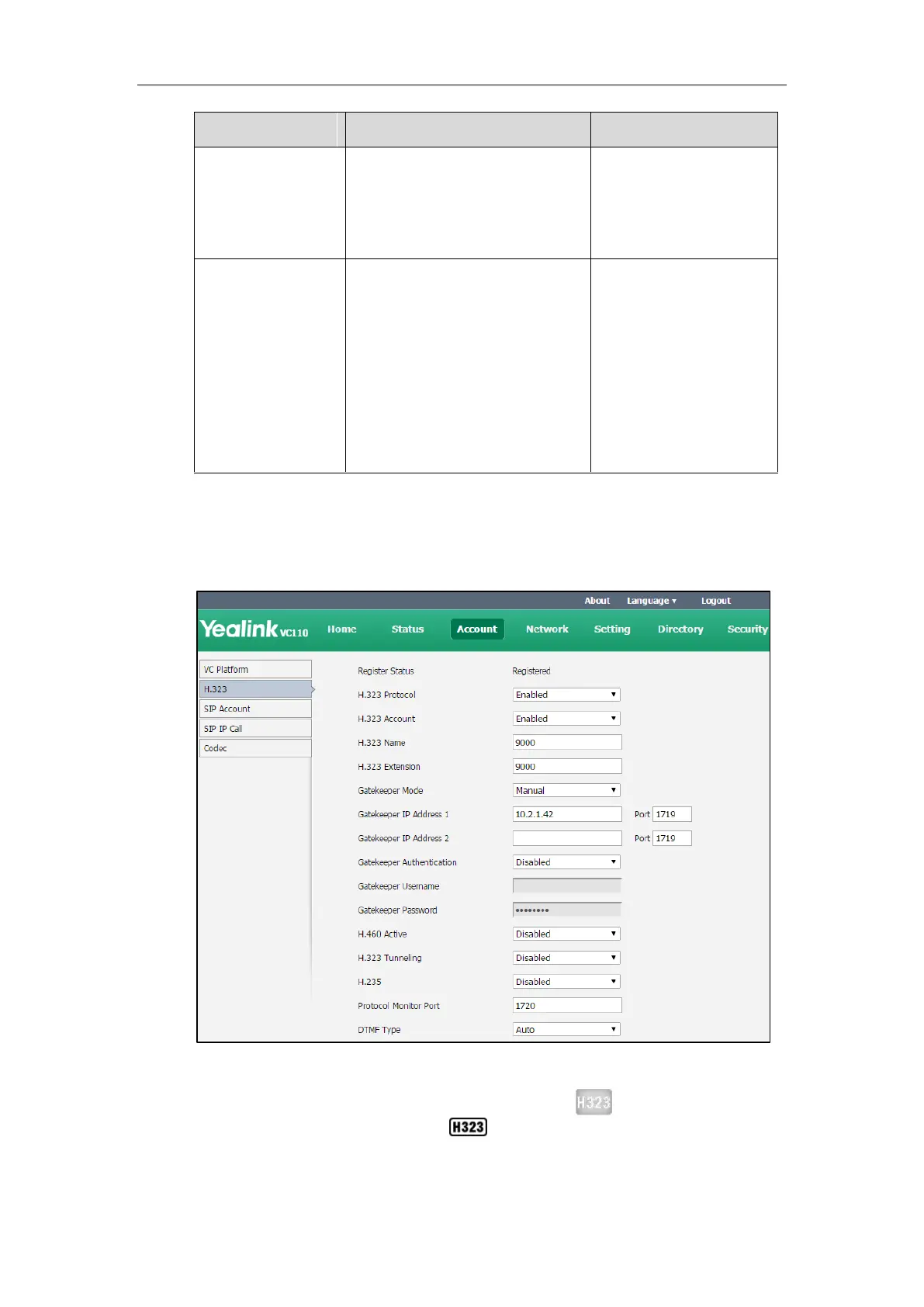 2. Configure the H.323 account settings.