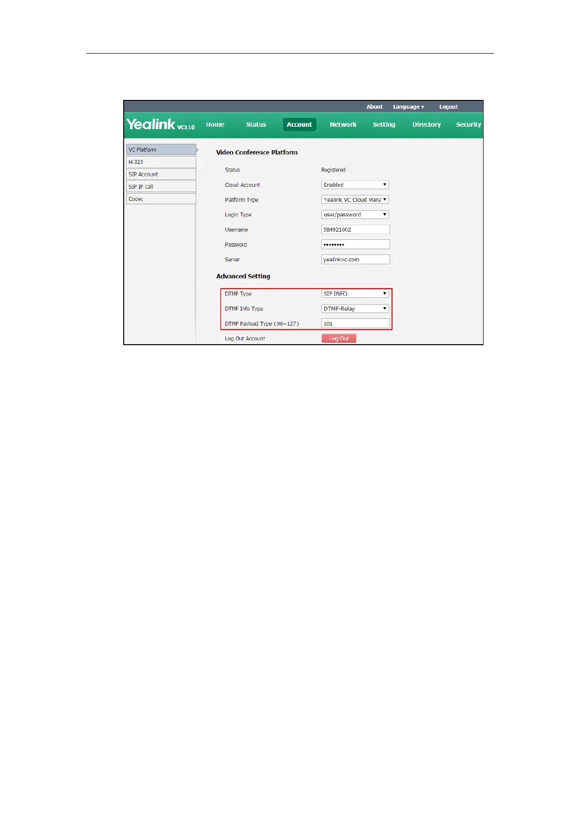4. Enter the desired value in the DTMF Payload Type(96~127) field.