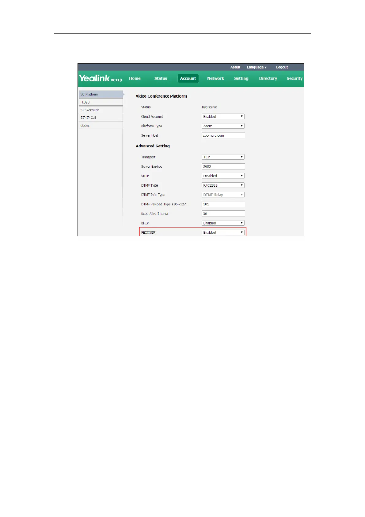 3. Select the desired value from the pull-down list of FECC(SIP).