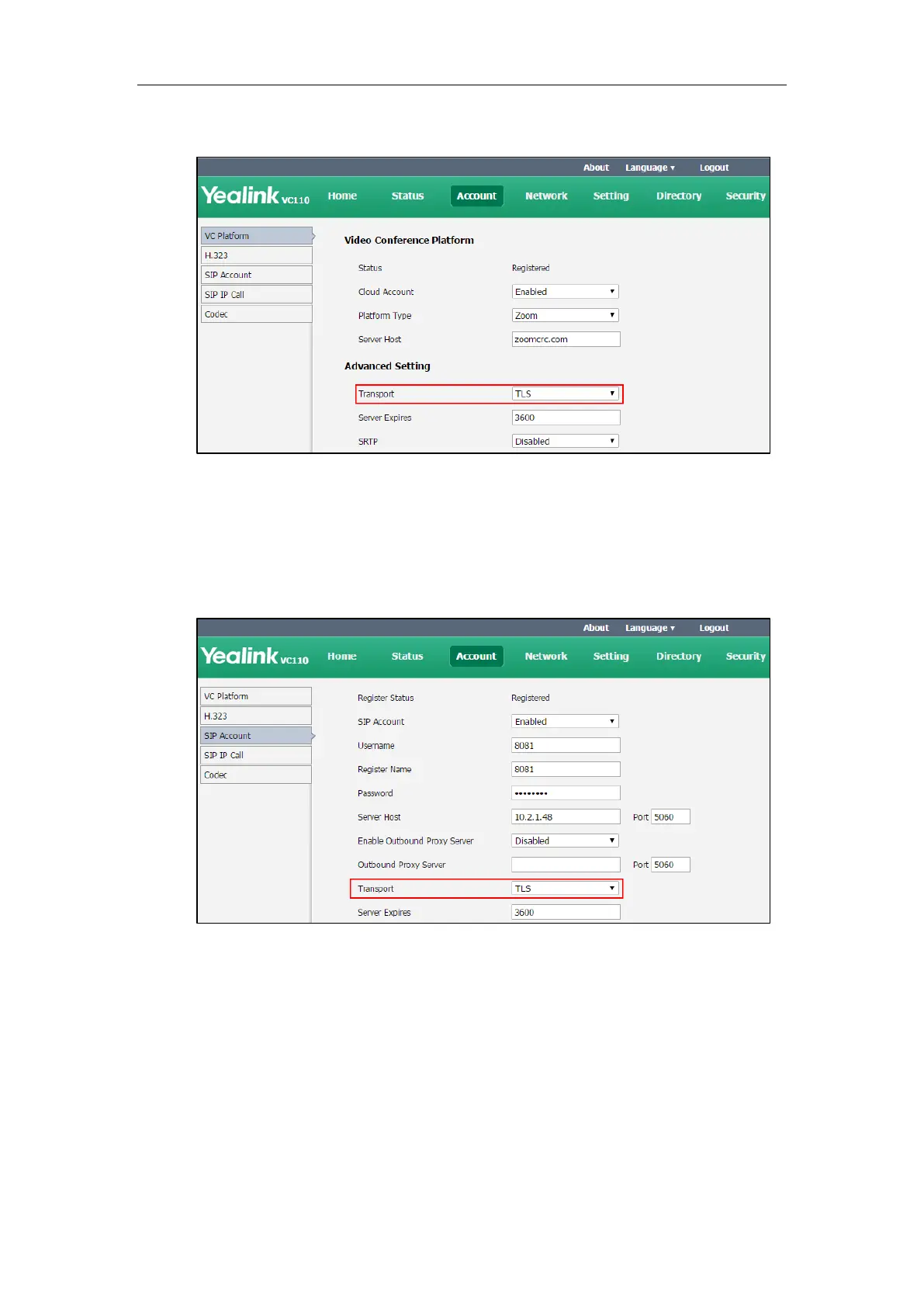 2. Select TLS from the pull-down list of the Transport.