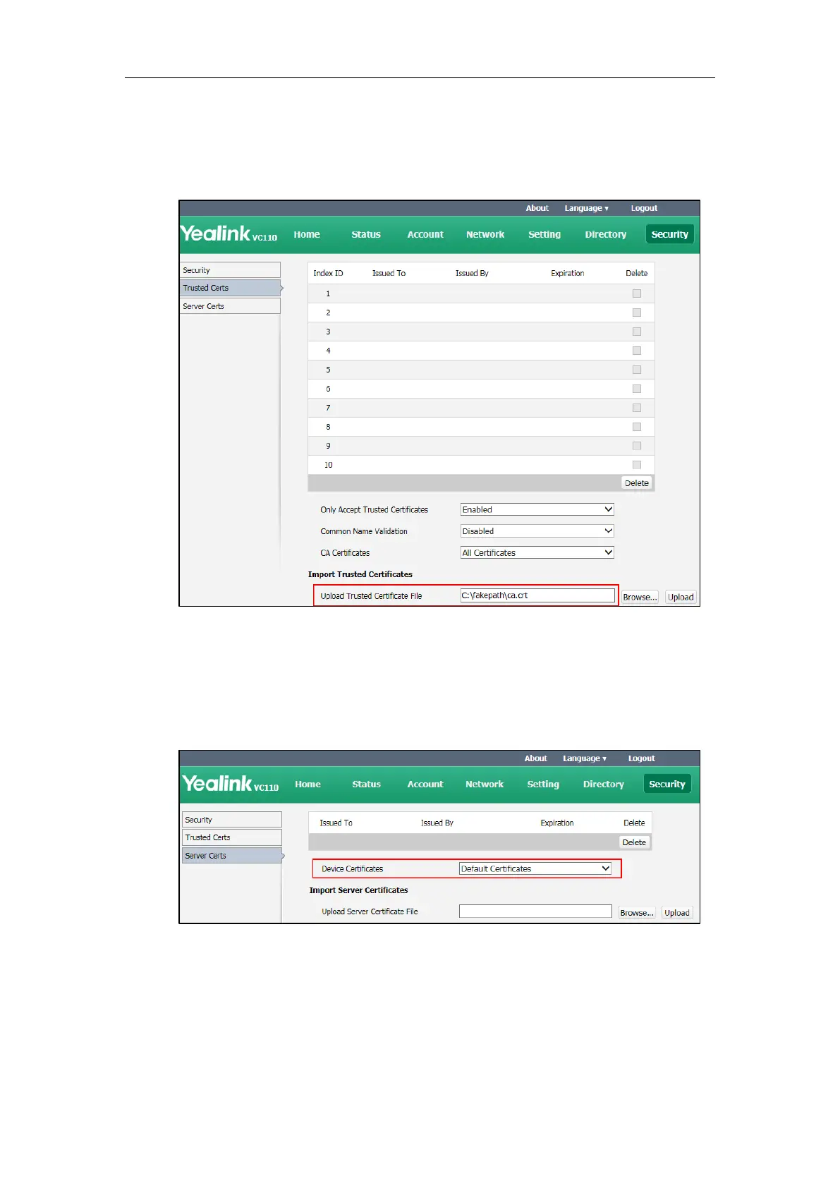 2. Select the desired value from the pull-down list of Device Certificates.