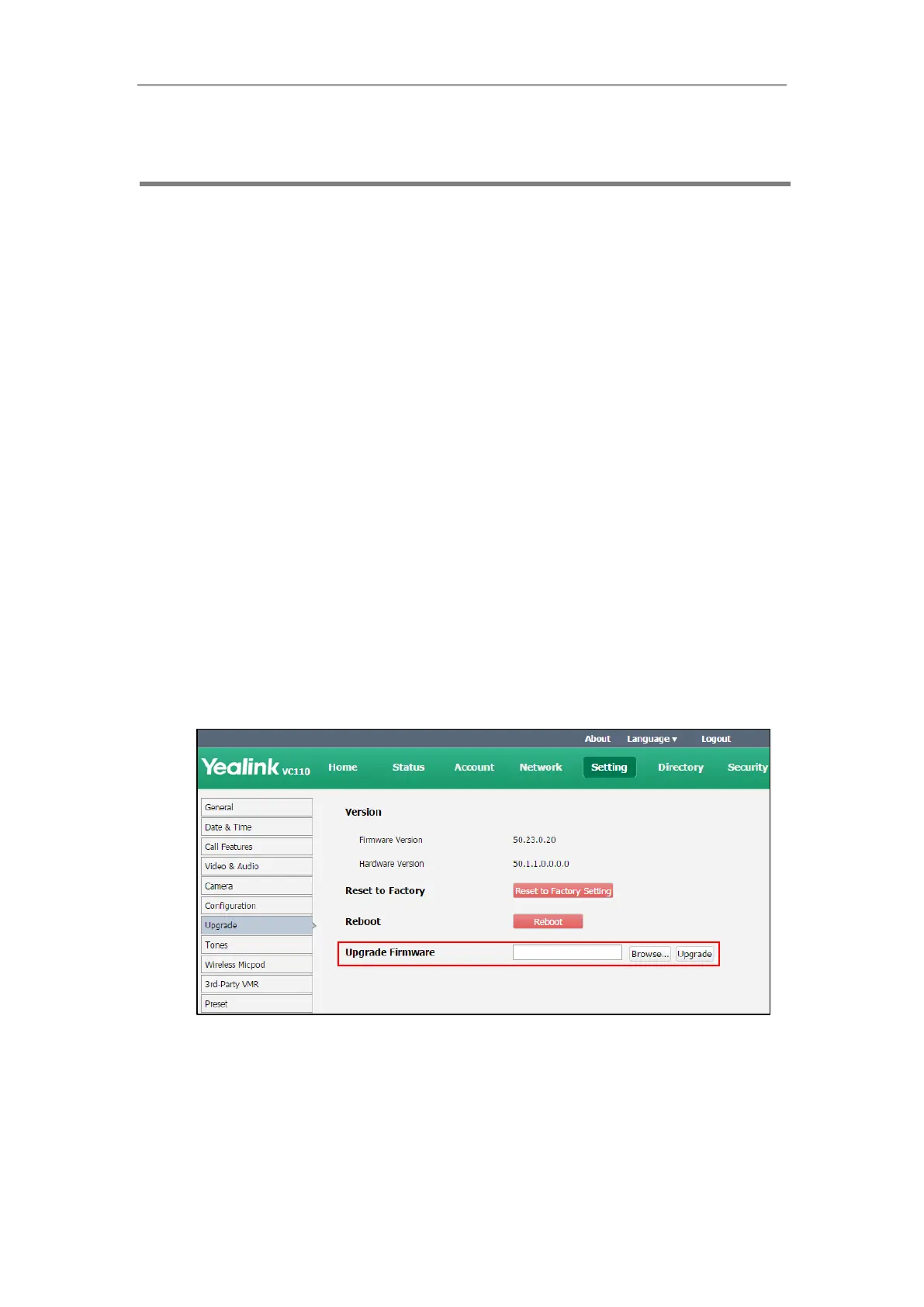 recommends you to update the latest firmware. You can upgrade the endpoint firmware via web