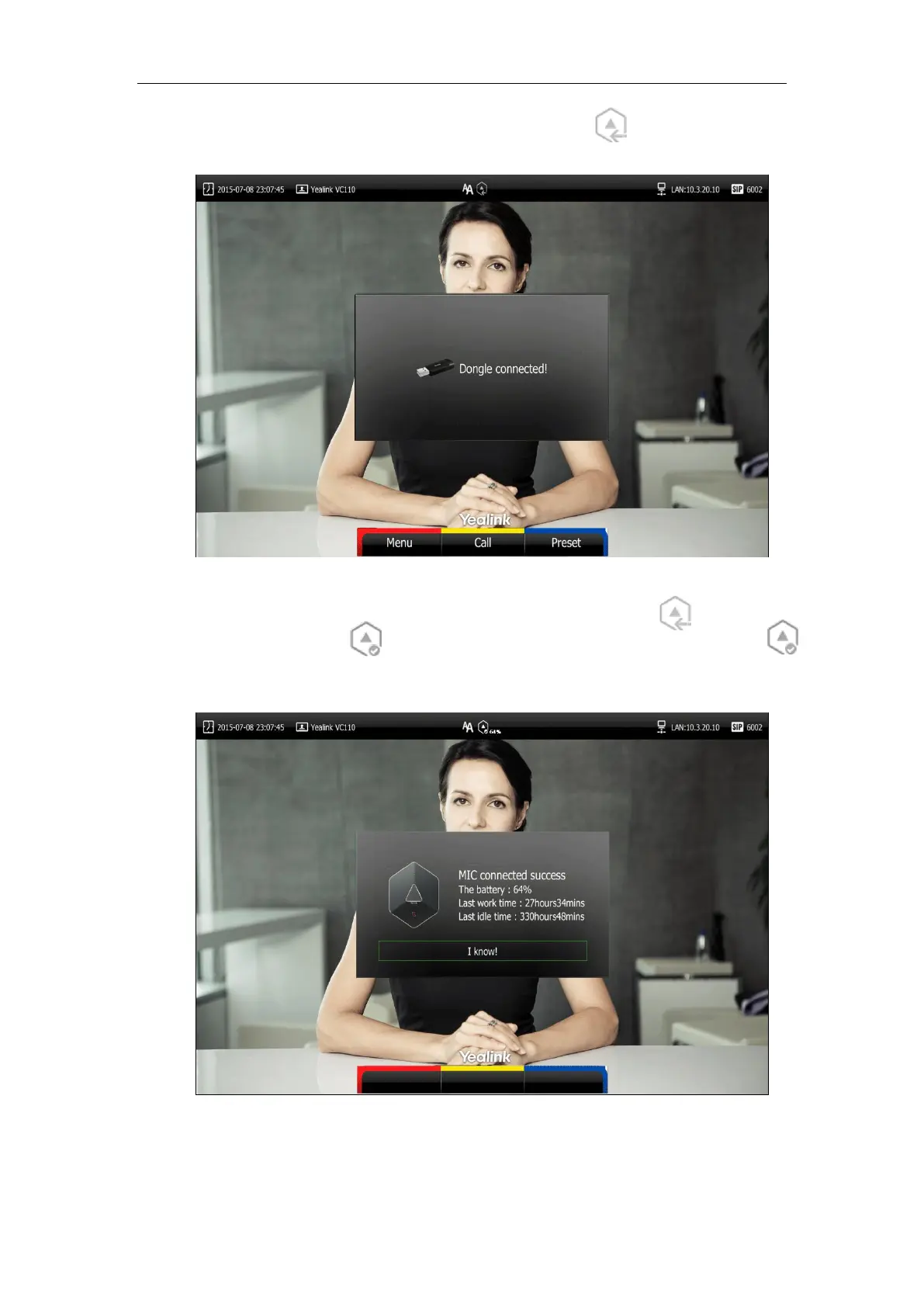 The VCM60 registers with the dongle automatically. If successful, the (unregistered)