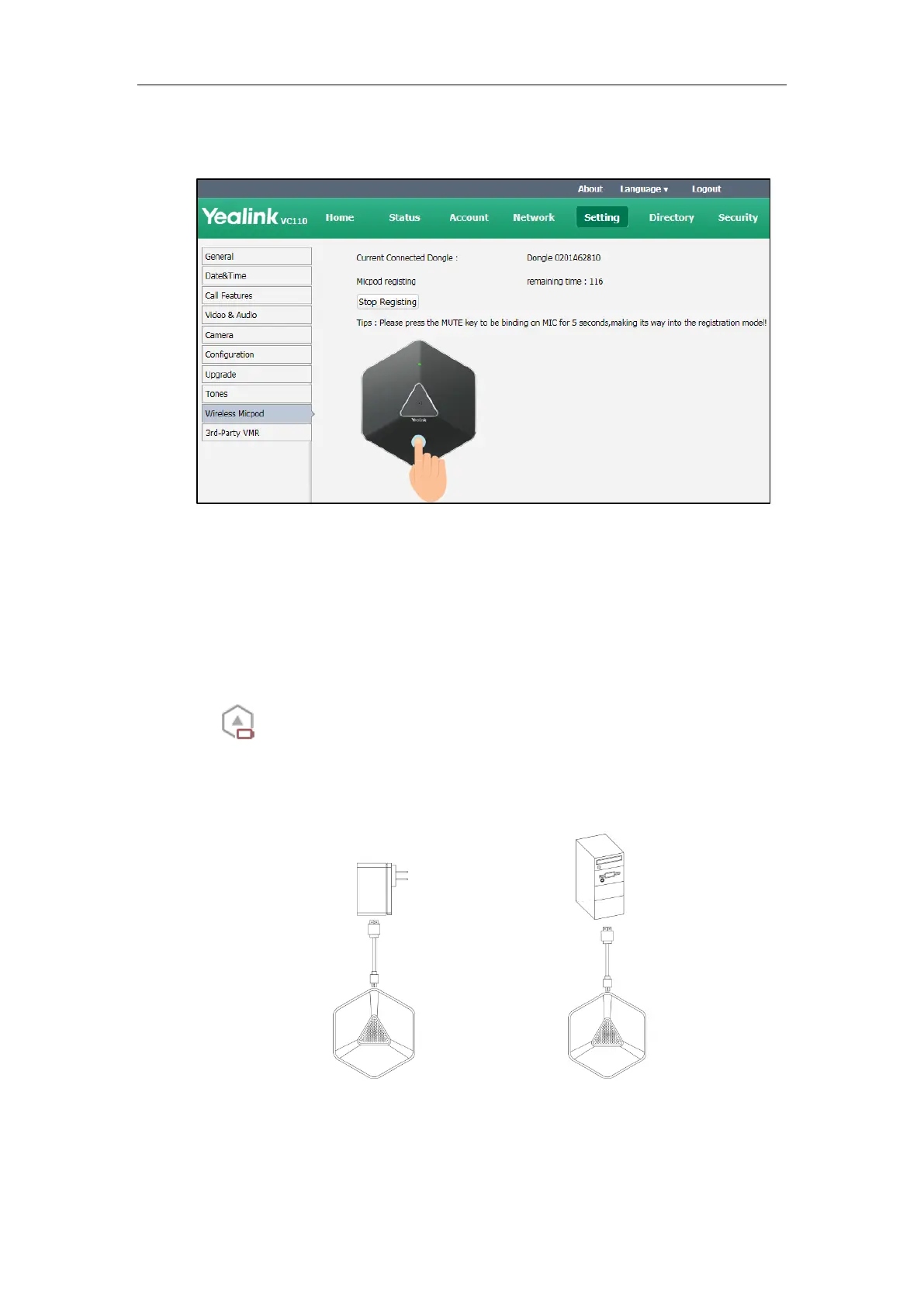 The VCM60 video conferencing wireless microphone and the dongle will be paired