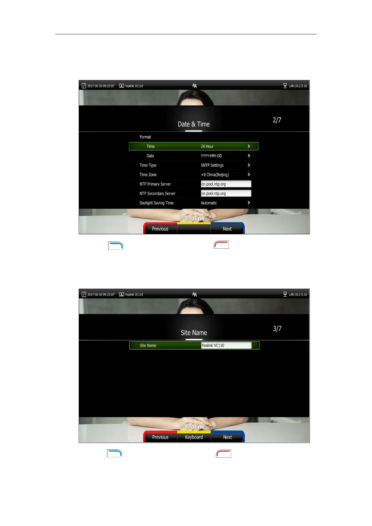 6. Press (Next soft key) to continue or press (Previous soft key) to return to