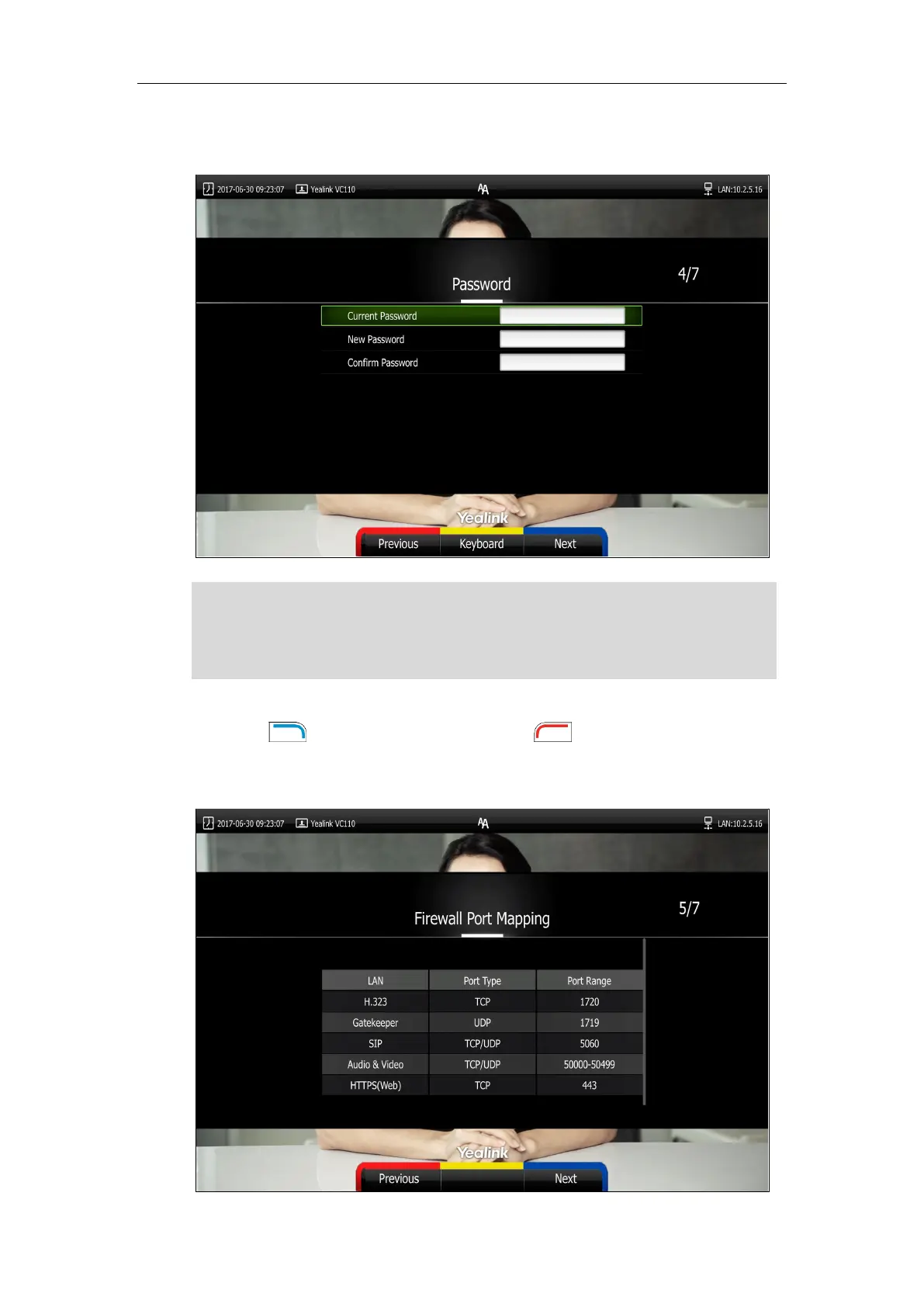 8. Press (Next soft key) to continue or press (Previous soft key) to return to