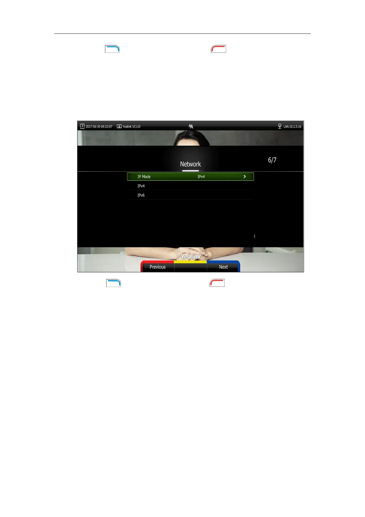 11. Press (Next soft key) to continue or press (Previous soft key) to return to the