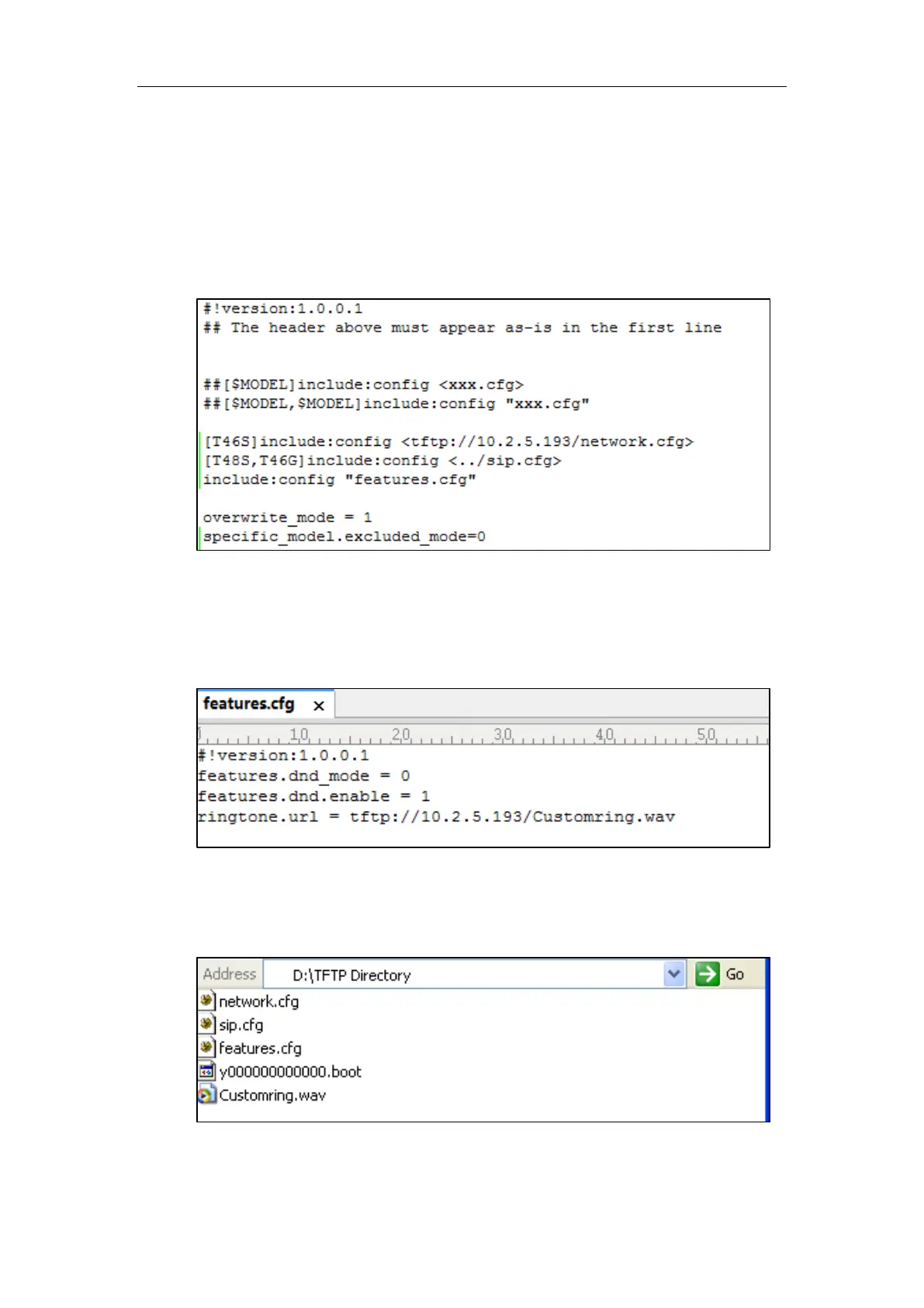 Specify the desired URL (e.g., tftp://10.2.5.193/network.cfg) of the configuration files in the