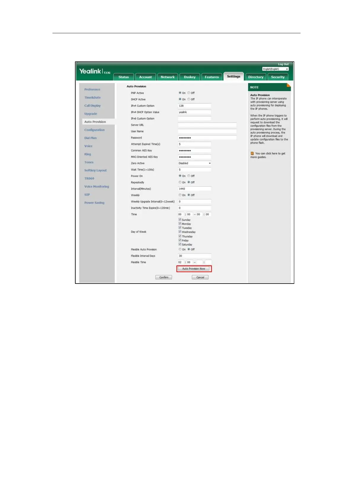 The IP phone will perform auto provisioning when receiving a SIP NOTIFY message which
