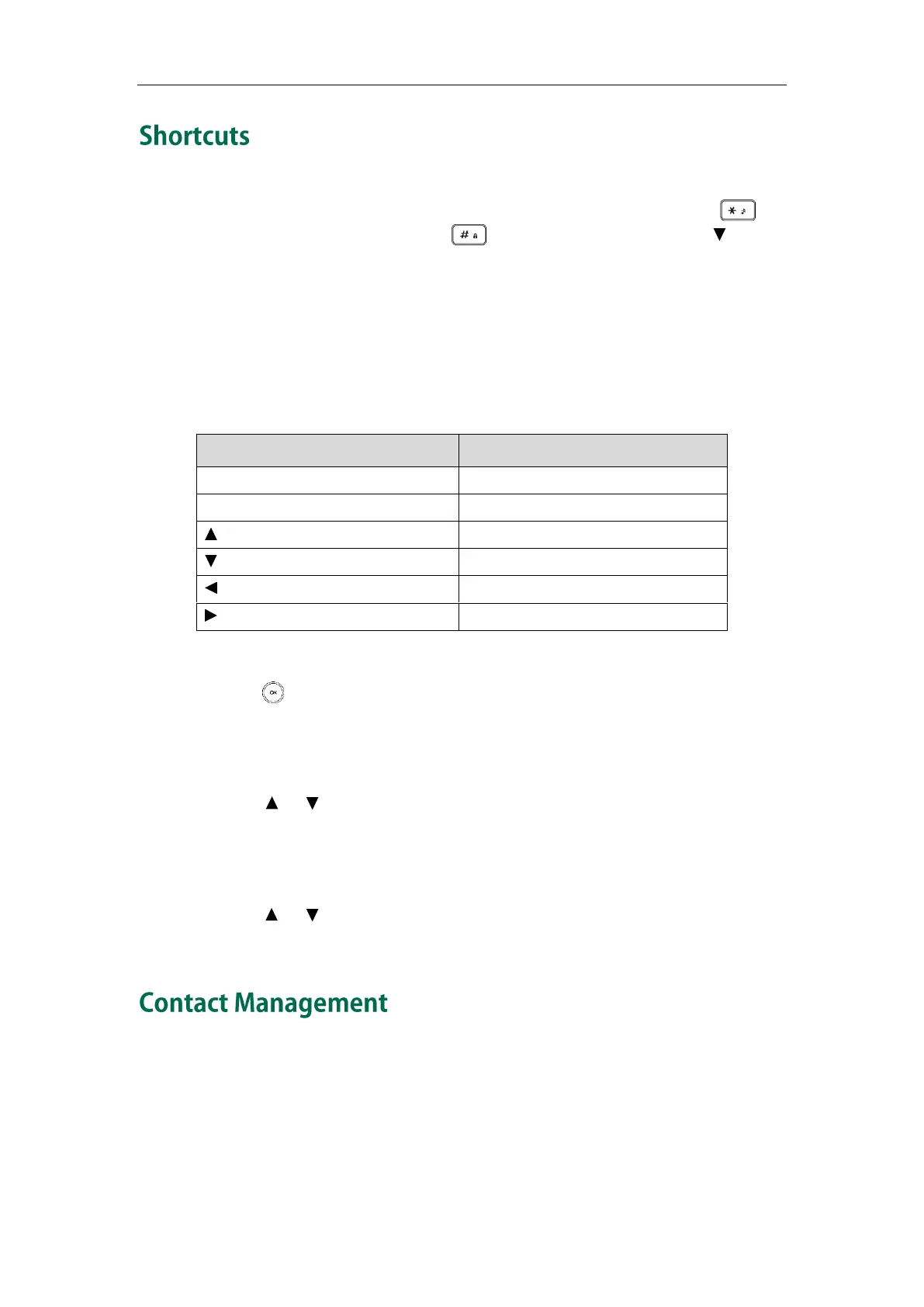 shortcuts. A feature is pre-assigned to each shortcut. For example, long press to
